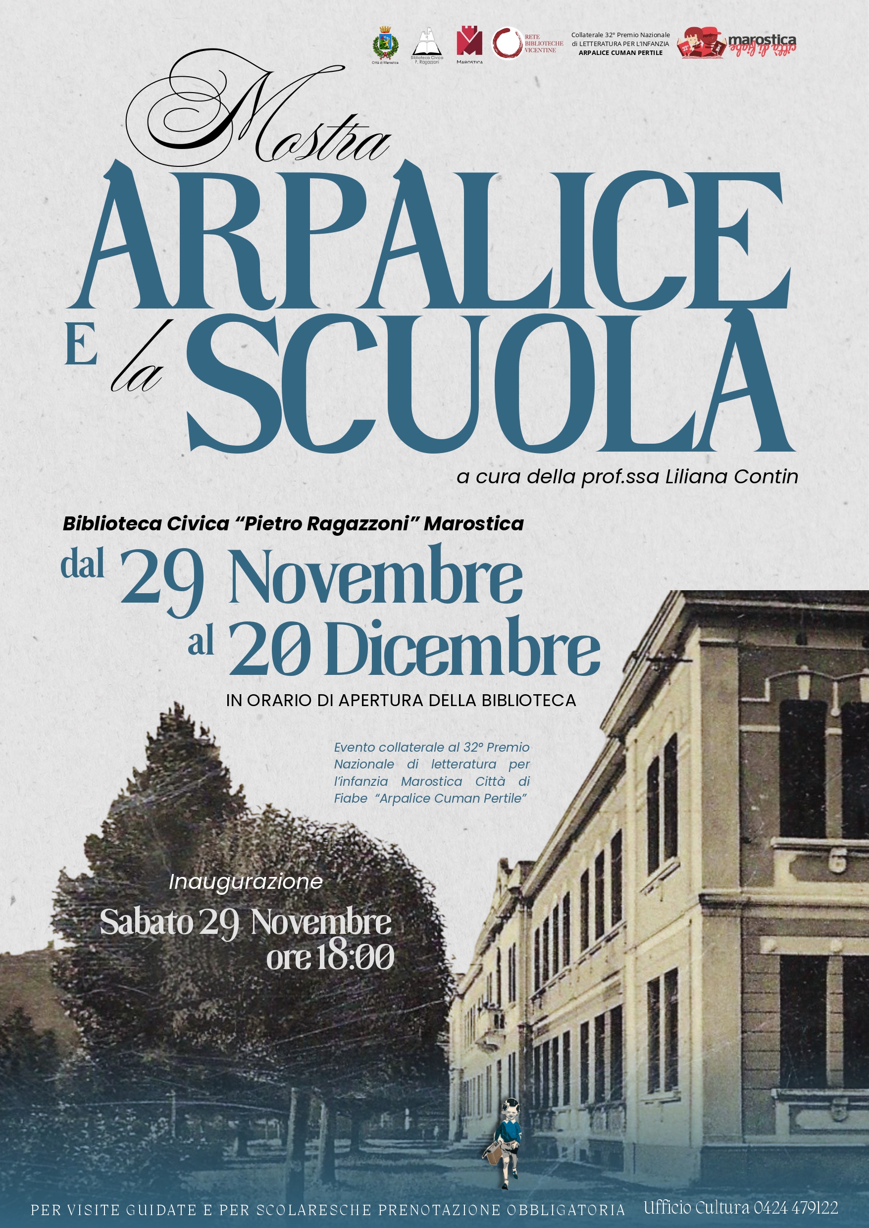 Una mostra per approfondire il legame tra Arpalice Cuman Pertile e il mondo della scuola, non solo come luogo di formazione, ma anche come campo di impegno civile, culturale e professionale. L’iniziativa, che si inserisce come attività collaterale alla 32ª edizione del Premio Nazionale di Letteratura per l’Infanzia “Marostica città di fiabe - Arpalice Cuman Pertile”, intende ripercorrere il ruolo della scrittrice come educatrice e autrice di testi scolastici che hanno contribuito alla crescita culturale delle nuove generazioni.