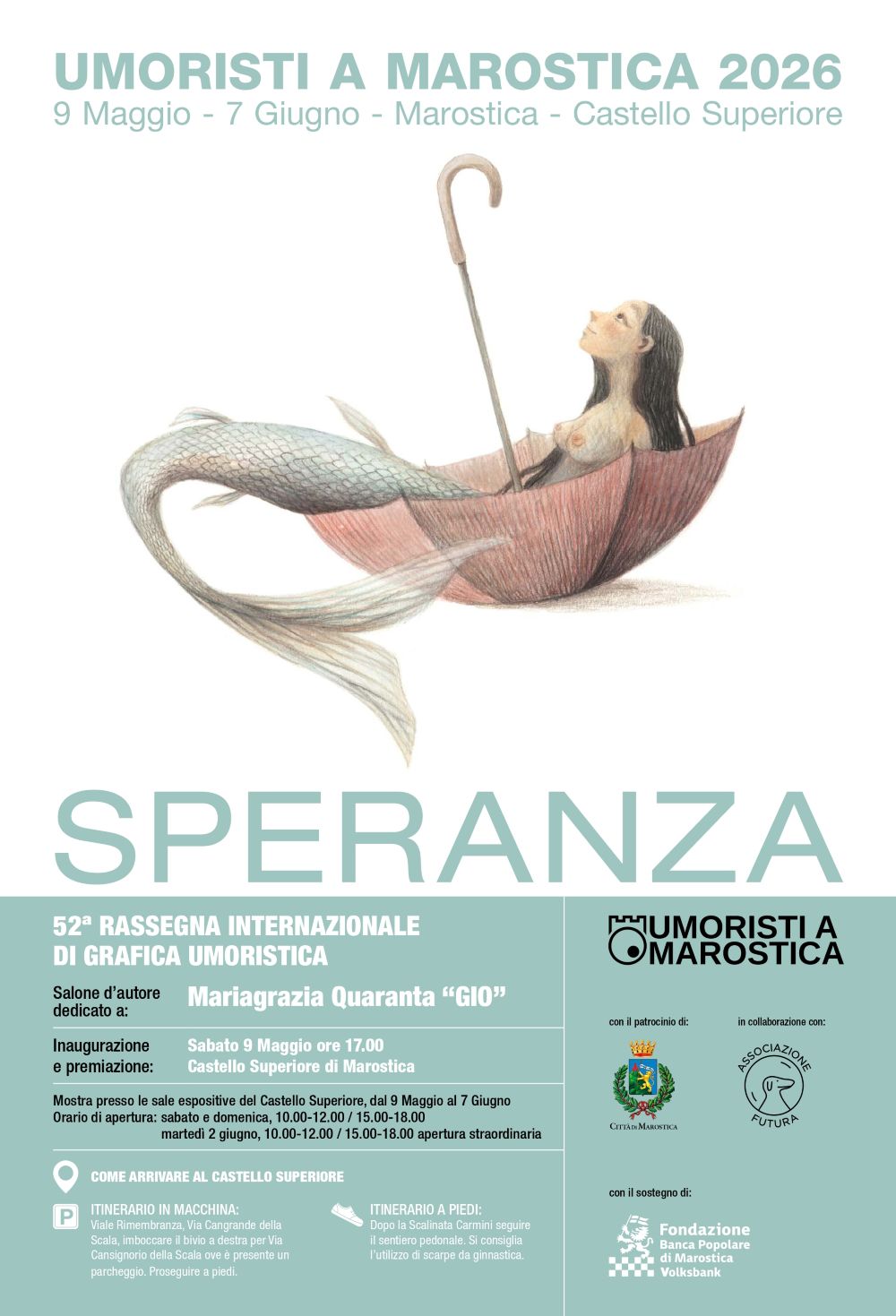 Sale Espositive Castello Superiore di Marostica dal 9 maggio al 7 giugno Inaugurazione e premiazione sabato 9 maggio ore 17.00 Aperta sabato e domenica dalle 10.00 alle 12.00 e dalle 15.00 alle 18.00 APERTURA STRAORDINARIA MARTEDì 2 GIUGNO dalle 10.00 alle 12 e dalle 15.00 alle 18.00 Vi aspettiamo per scoprire un’esposizione capace di far sorridere… e pensare. Info e visite guidate su prenotazione scrivendo a